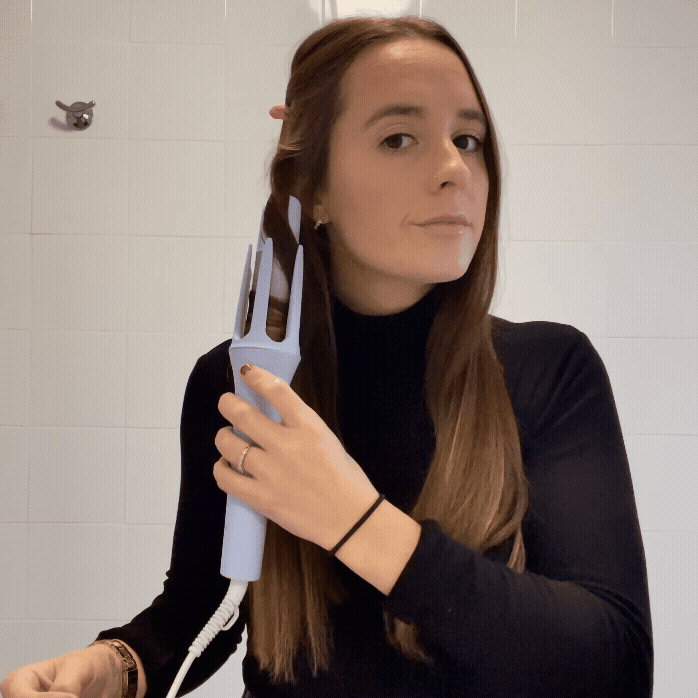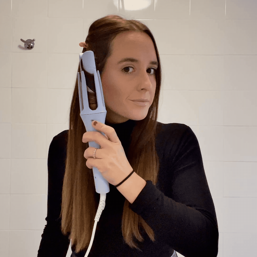 Rizos perfectos sin esfuerzo. Este rizador automático crea ondas suaves y definidas. Solo introduce un mechón y deja que haga la magia.